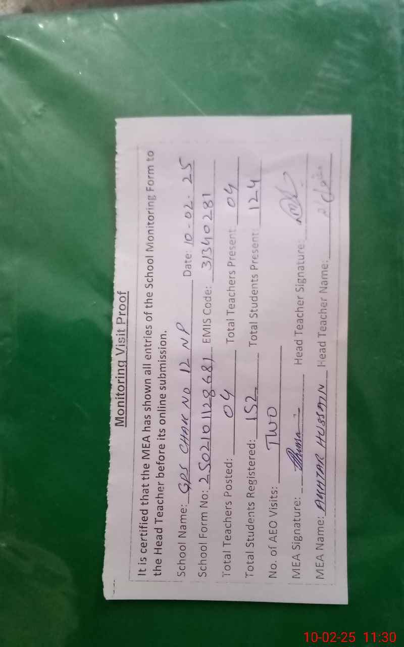 | EMIS Code: 31340281 | Name of School: GPS CHAK NO 12 NP | |||