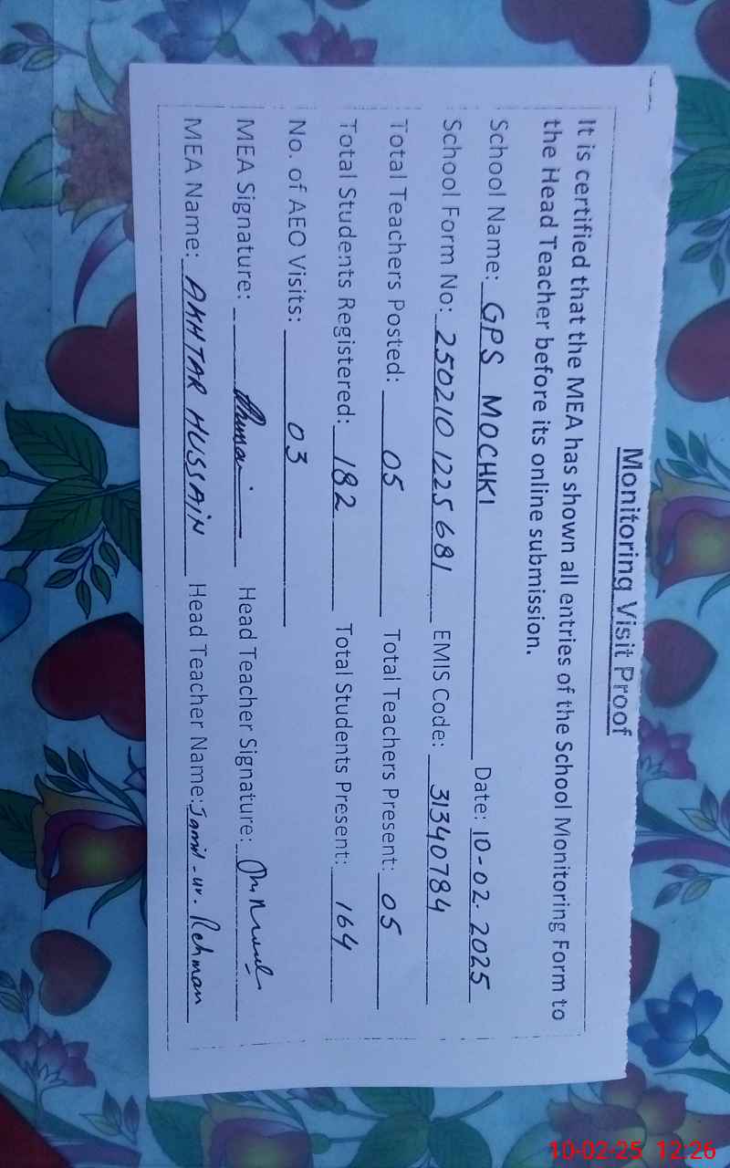 | EMIS Code: 31340784 | Name of School: GPS MOCHKI | |||