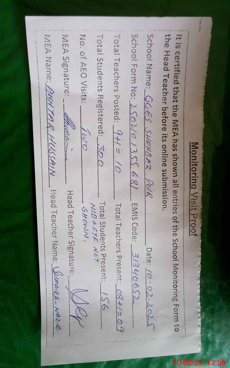 | EMIS Code: 31340652 | Name of School: GGES SHEHBAZ PUR | |||