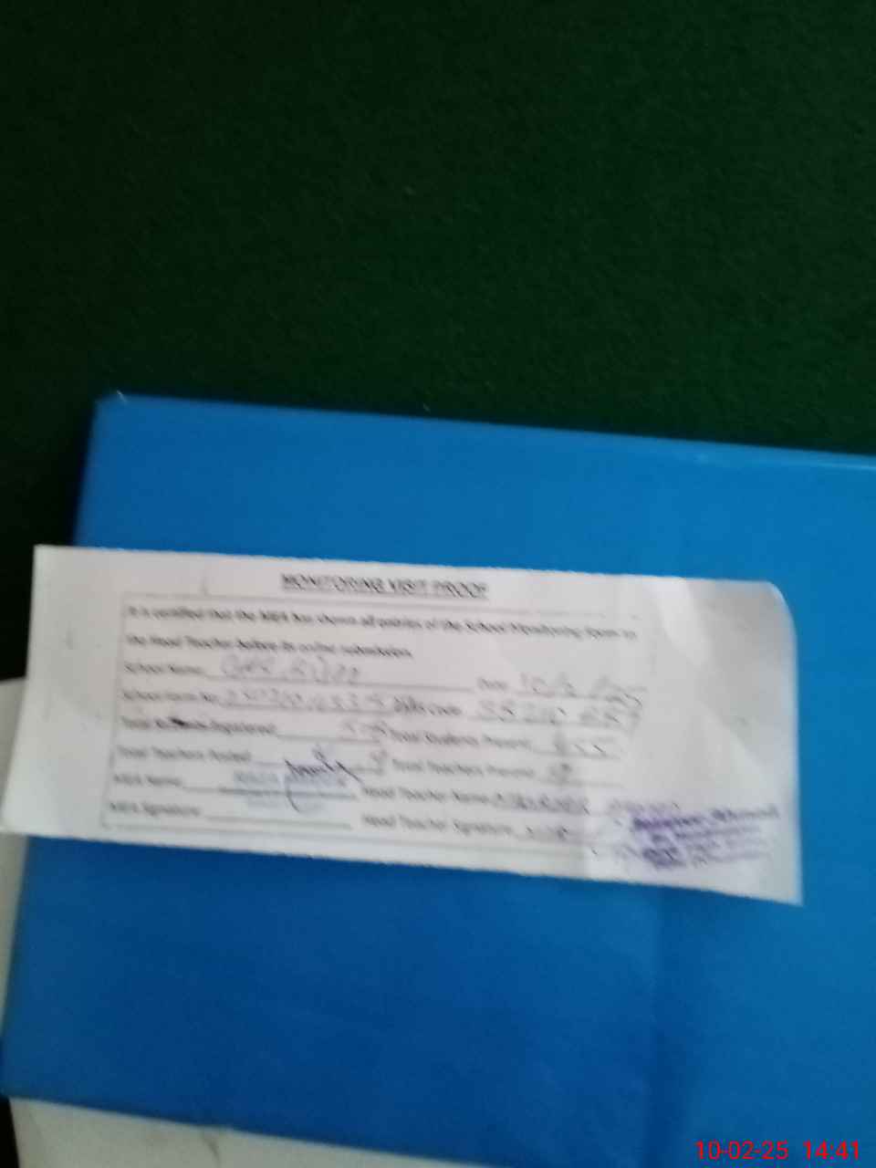 | Attendance Register | Head Teacher | MEA with School | Visit Proof |