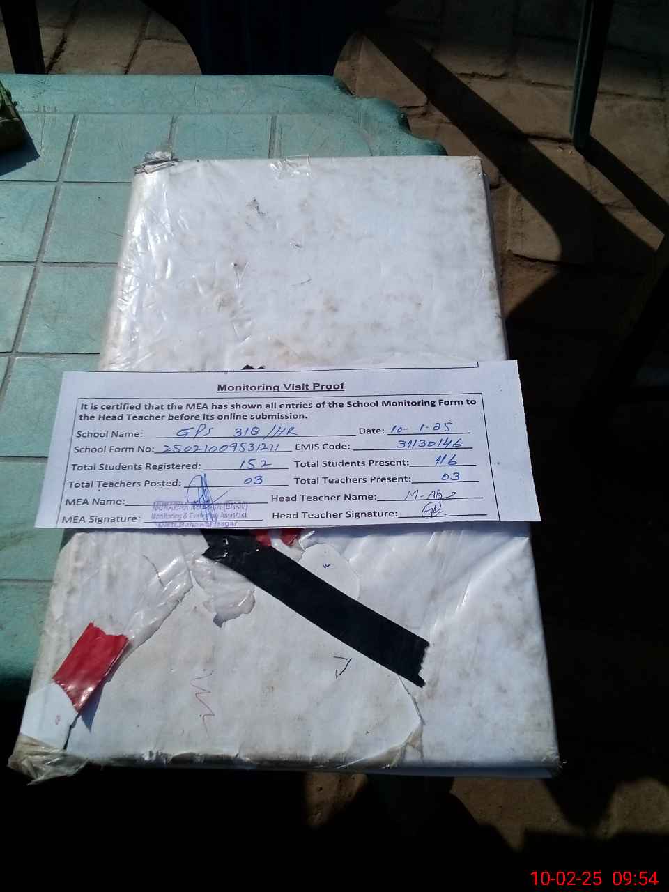 | Attendance Register | Head Teacher | MEA with School | Visit Proof |