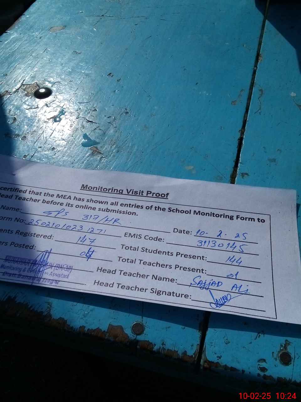 | EMIS Code: 31130145 | Name of School: GPS CHAK 317/HR | |||