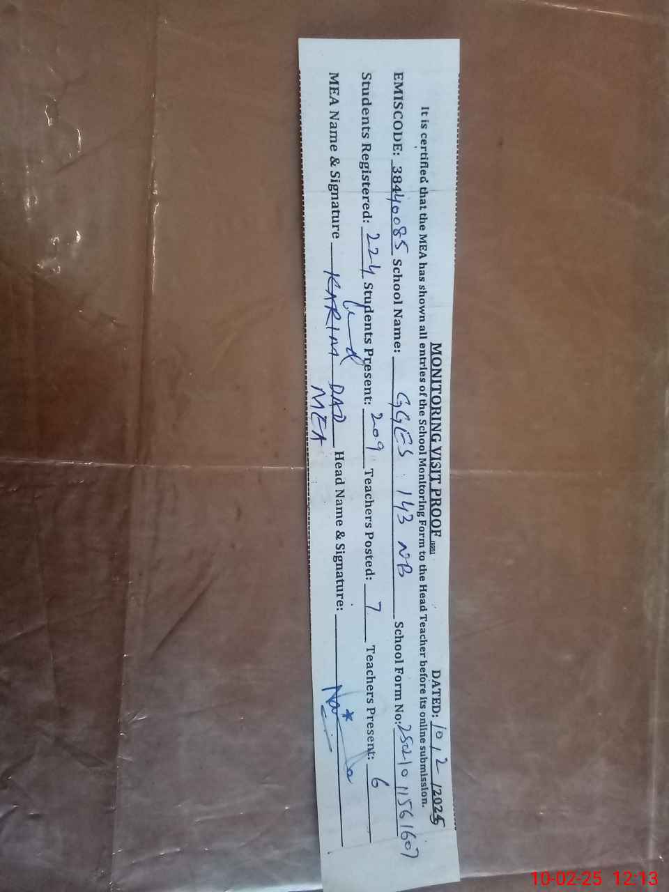 | EMIS Code: 38440085 | Name of School: GGES CHAK NO.143 NB | |||