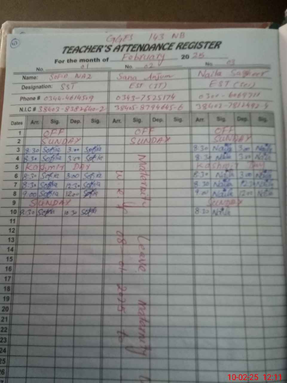 | Name: Sa**** Na**** Designation: (School Headmaster's/Headmistress's) SST Sci Phone/Cell Number: 03**** |