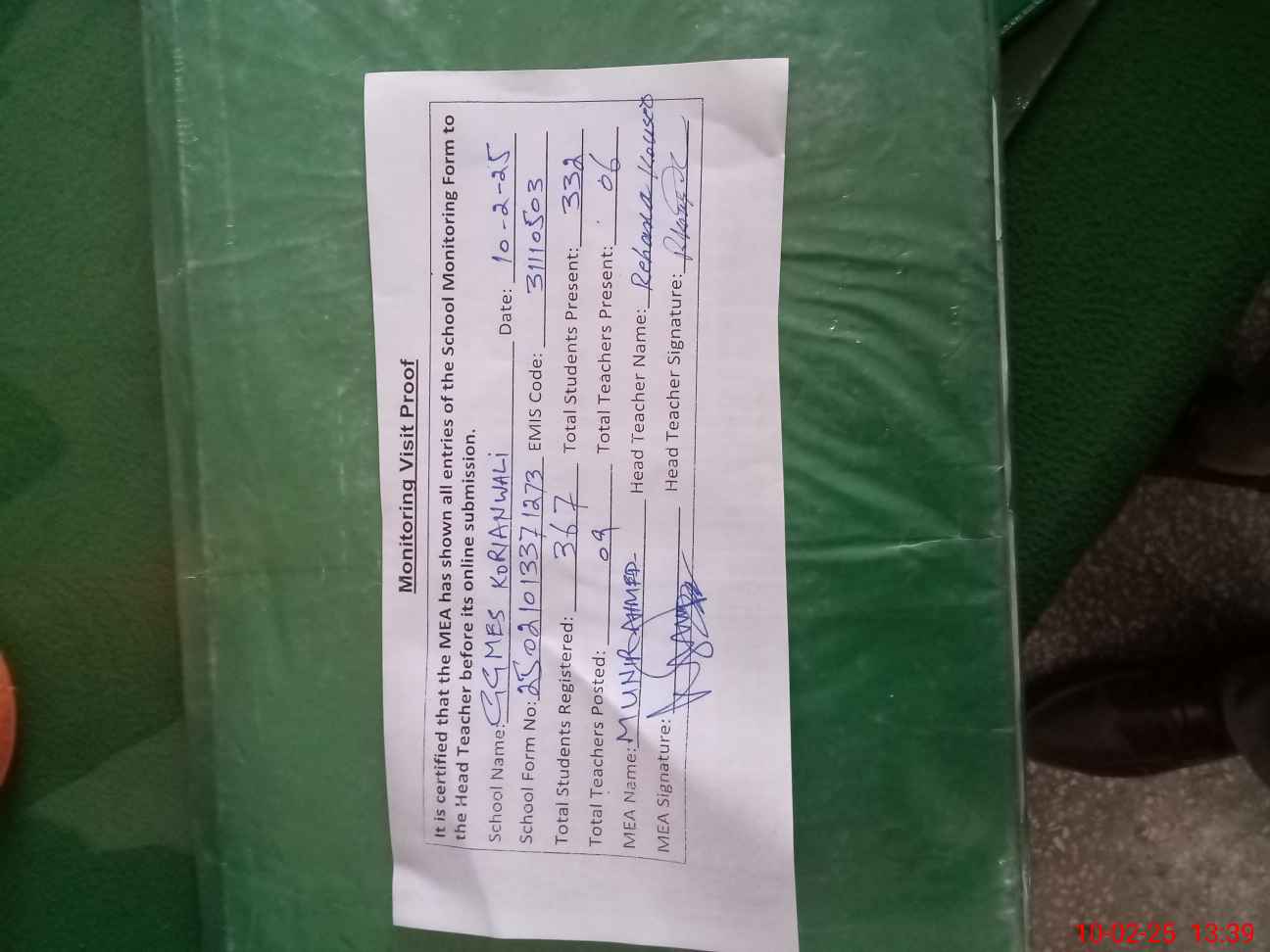 | EMIS Code: 31110503 | Name of School: GGMES KORIAN WALI | |||