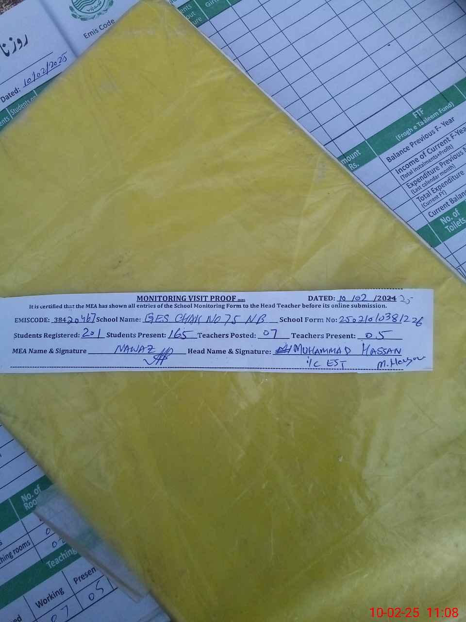 | EMIS Code: 38420467 | Name of School: GES CHAK NO.75 NB | |||