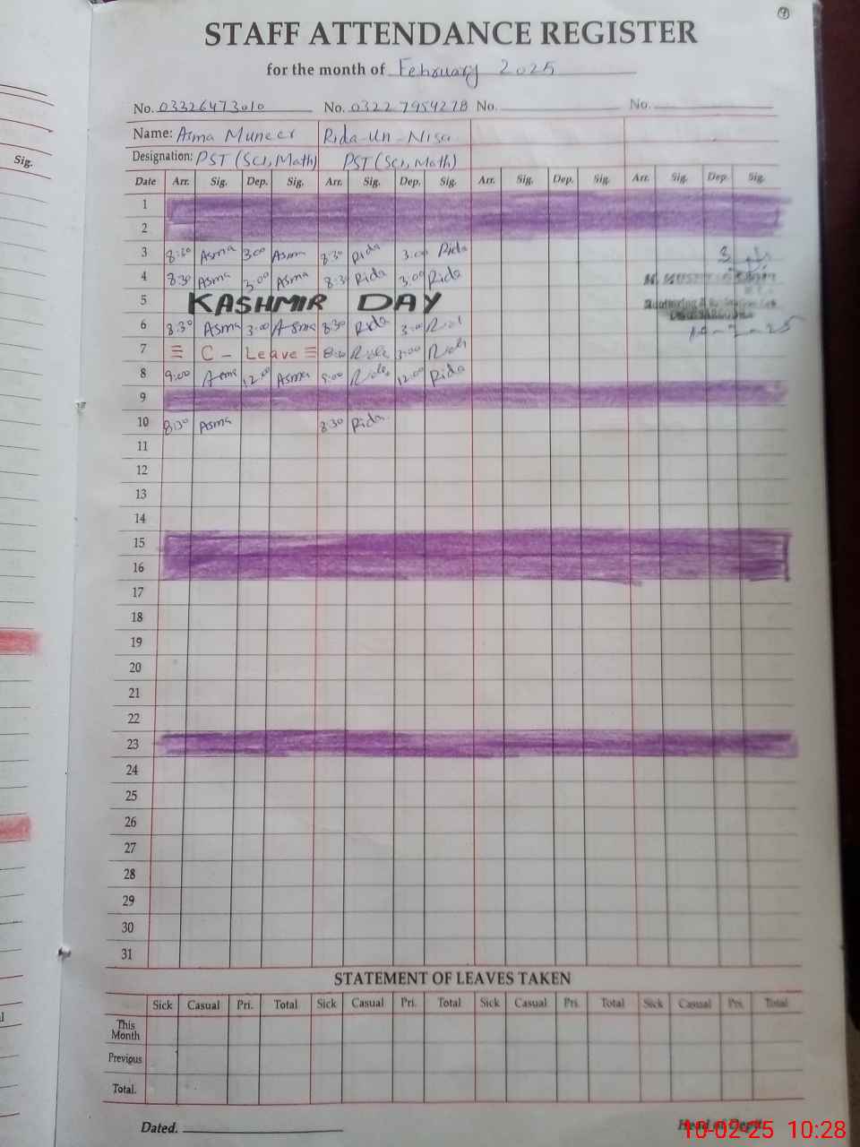 | Name: AS**** MU**** Designation: (School Headmaster's/Headmistress's) PST Phone/Cell Number: 03**** |