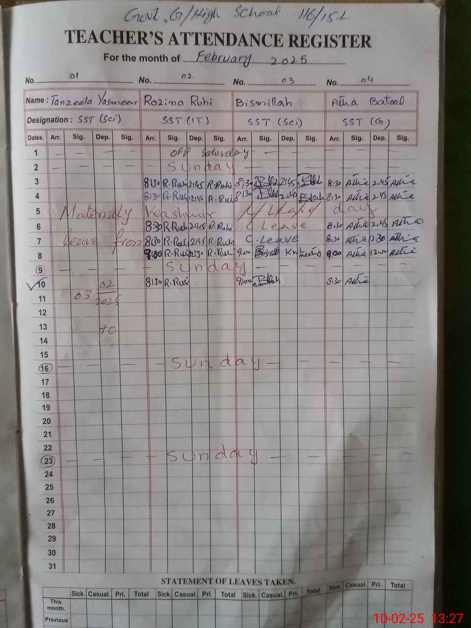| 36**** | Sh**** Sh**** | PST | Regular | 31 | 0 | 0 | 31 | 0 | 0 | 0 | 0 | 0 | Maternity |