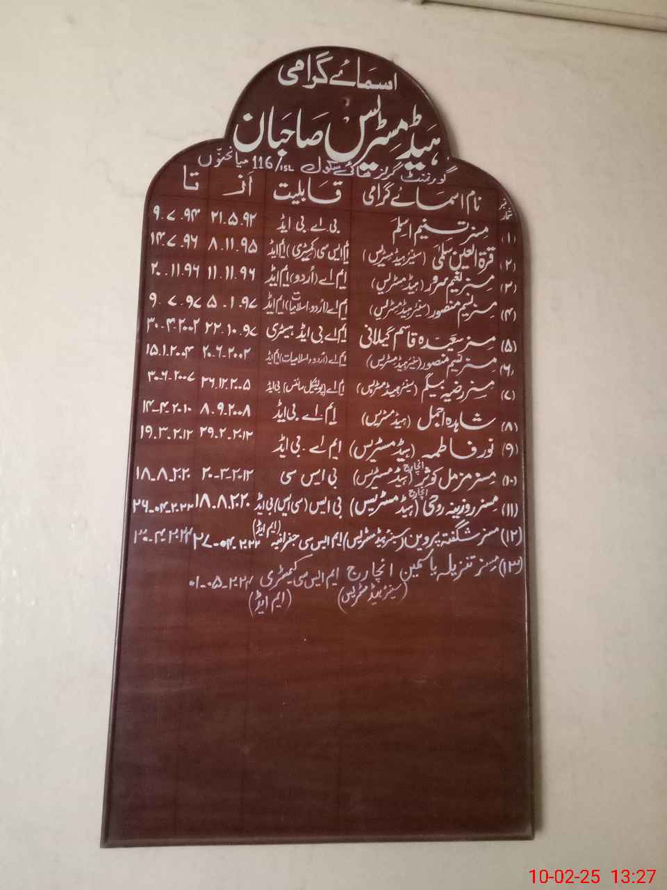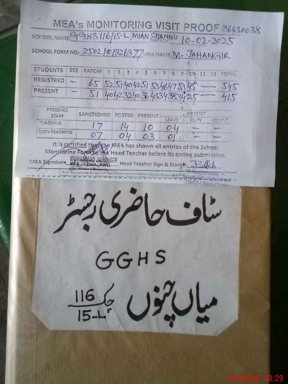 | EMIS Code: 36430038 | Name of School: GGHS 116/15-L, MIAN CHANNU | |||