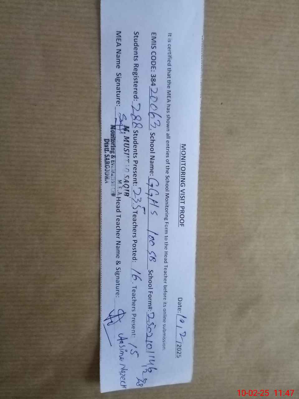 | EMIS Code: 38420063 | Name of School: GGHS CHAK NO.100 SB | |||