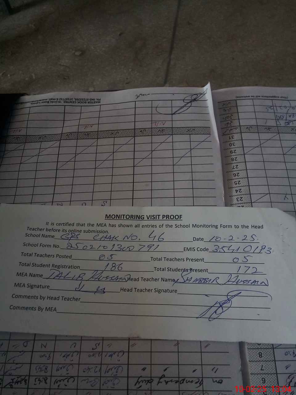 | EMIS Code: 35410193 | Name of School: GPS CHAK NO 46 | |||