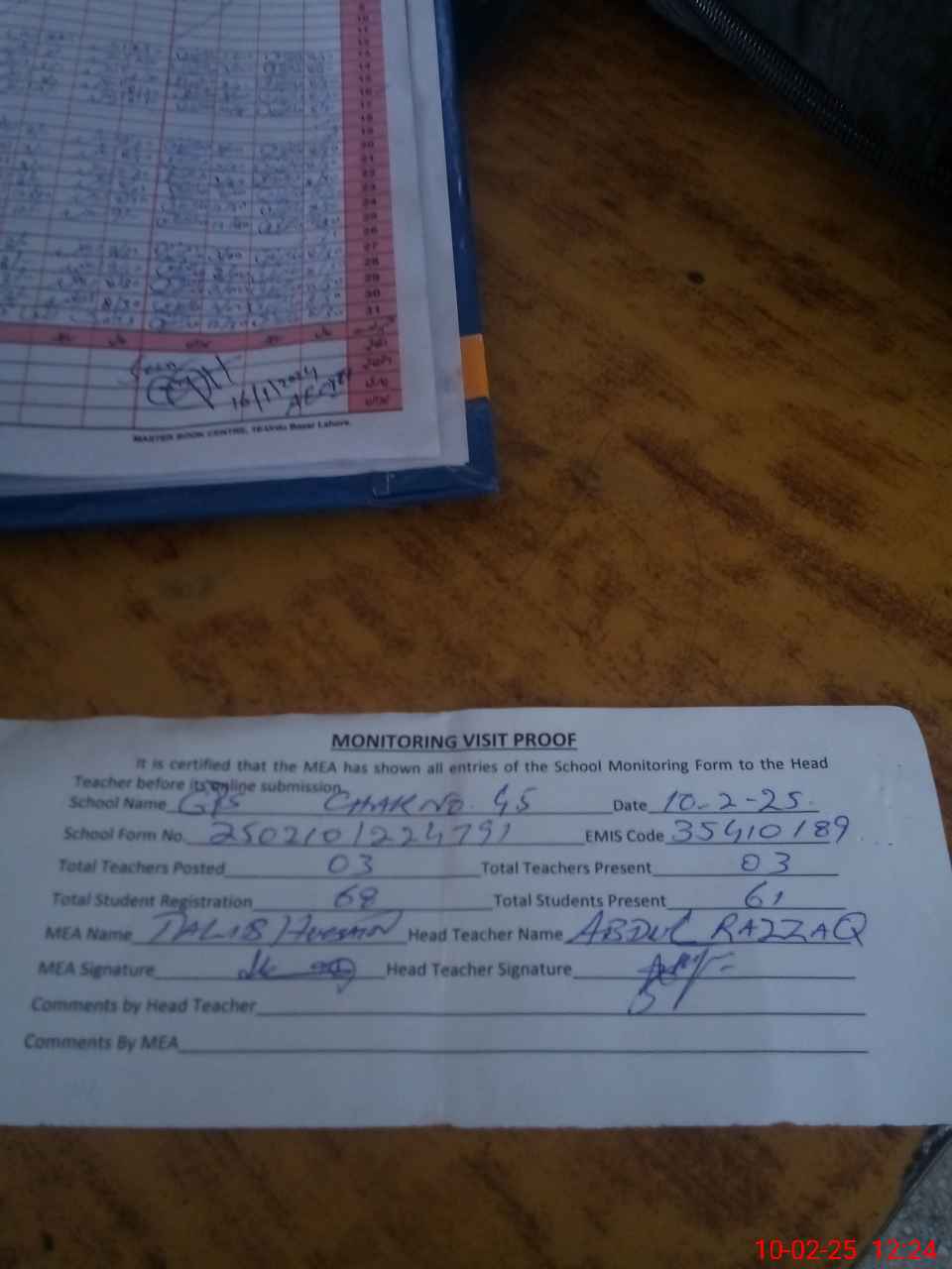 | EMIS Code: 35410189 | Name of School: GPS CHAK NO 45 | |||