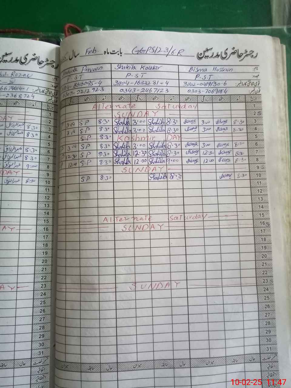 | CNIC | Full Name | Designation | R/C | Absence During Last Calender Month |