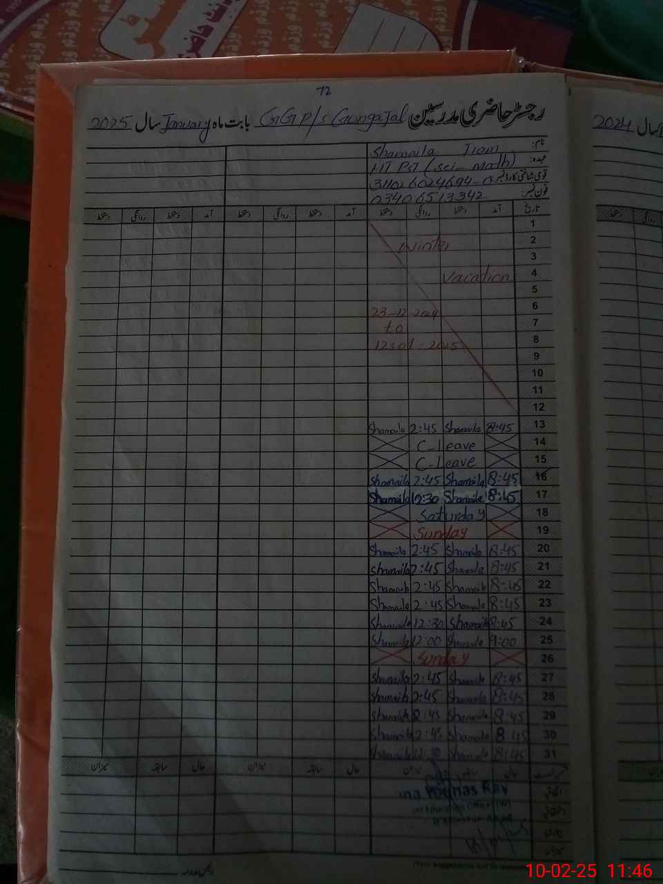 | Name: SH**** IR**** Designation: (School Headmaster's/Headmistress's) E S E ( Sci Math) Phone/Cell Number: 03**** |
