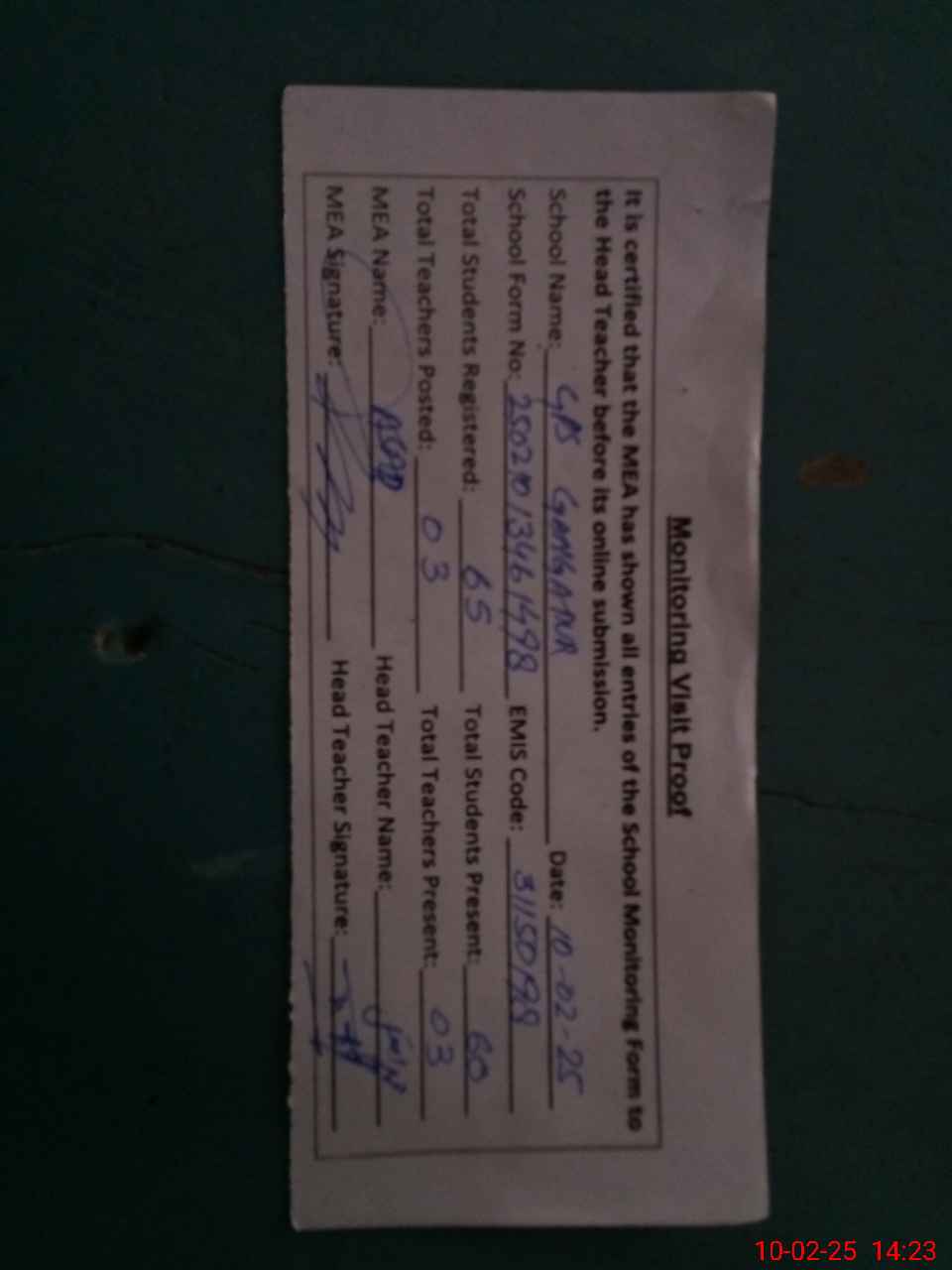 | EMIS Code: 31150198 | Name of School: GPS GANGA PUR | |||