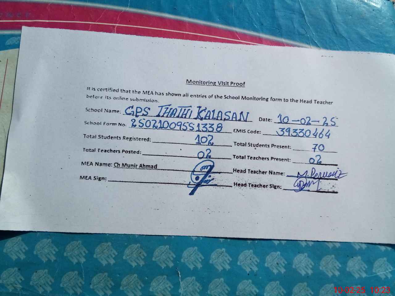 | EMIS Code: 39330464 | Name of School: GPS THATHI KALSAN | |||