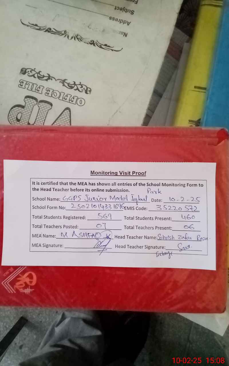 | EMIS Code: 35220572 | Name of School: GGPS JUNIOR MODEL IQBAL PARK | |||