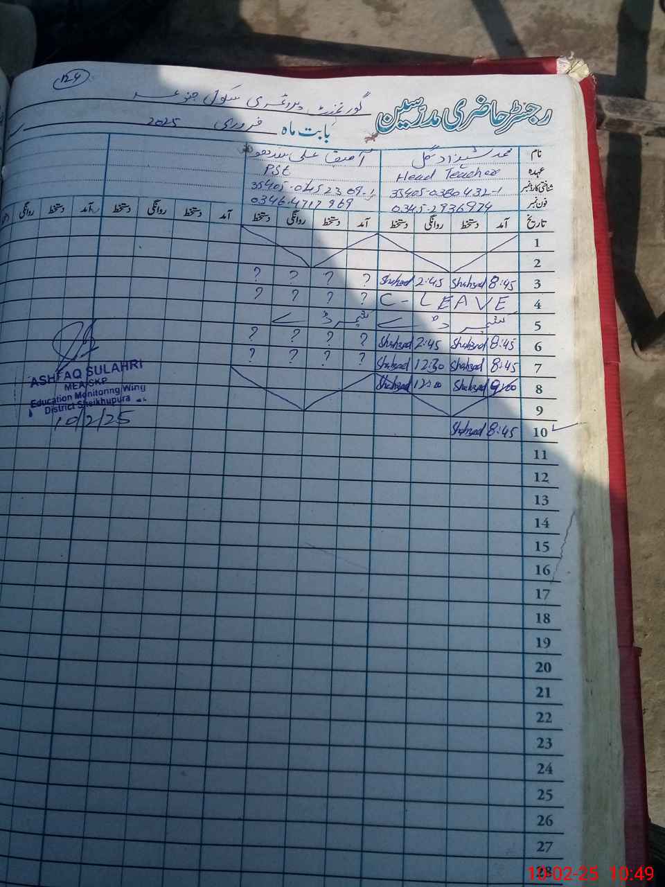 | Name: Mu**** Sh**** Designation: (School Headmaster's/Headmistress's) PST Phone/Cell Number: 03**** |