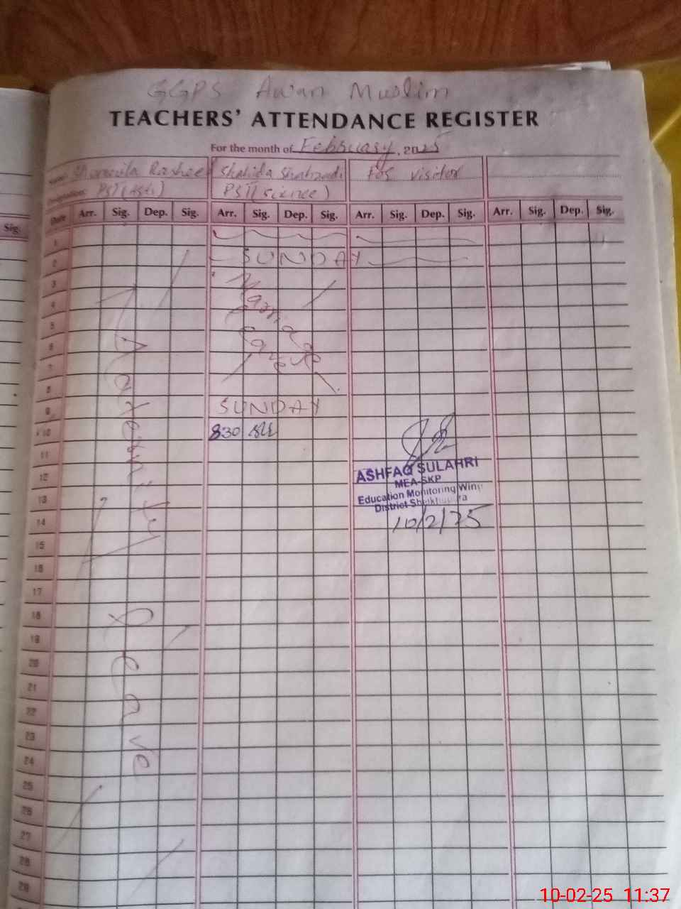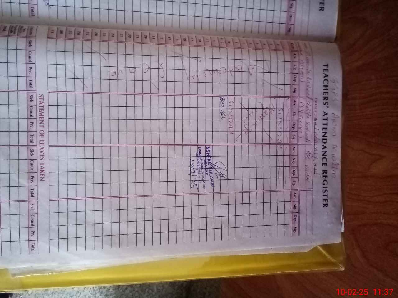 | Name: SH**** RA**** Designation: (School Headmaster's/Headmistress's) PST Phone/Cell Number: 03**** |