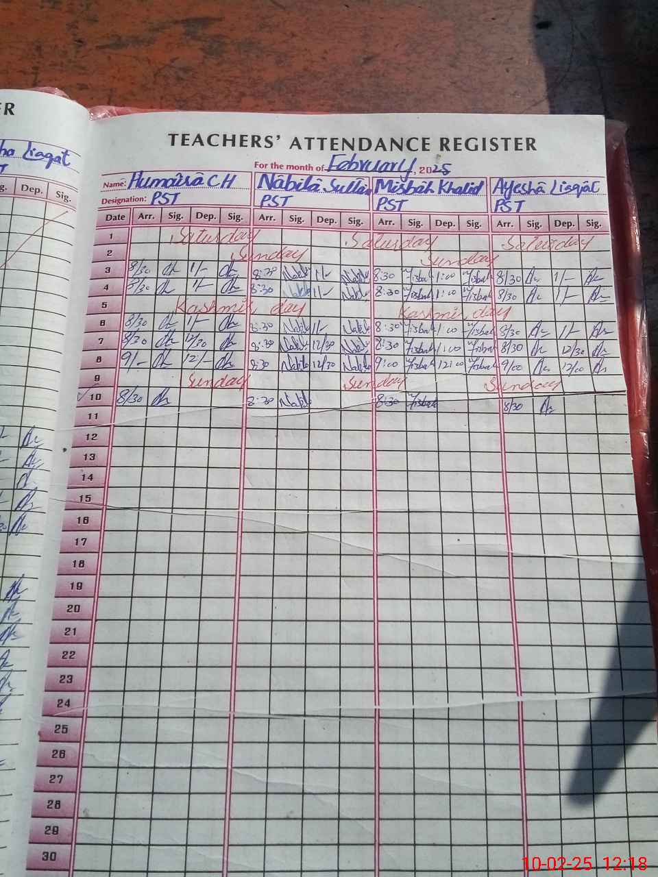 | Name: HU**** CH**** Designation: (School Headmaster's/Headmistress's) PST Phone/Cell Number: 03**** |