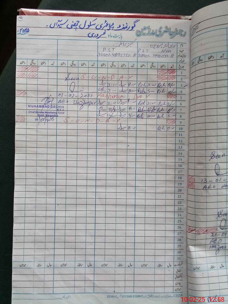 | Name: Mu**** Ah**** Designation: (School Headmaster's/Headmistress's) PST Phone/Cell Number: 03**** |