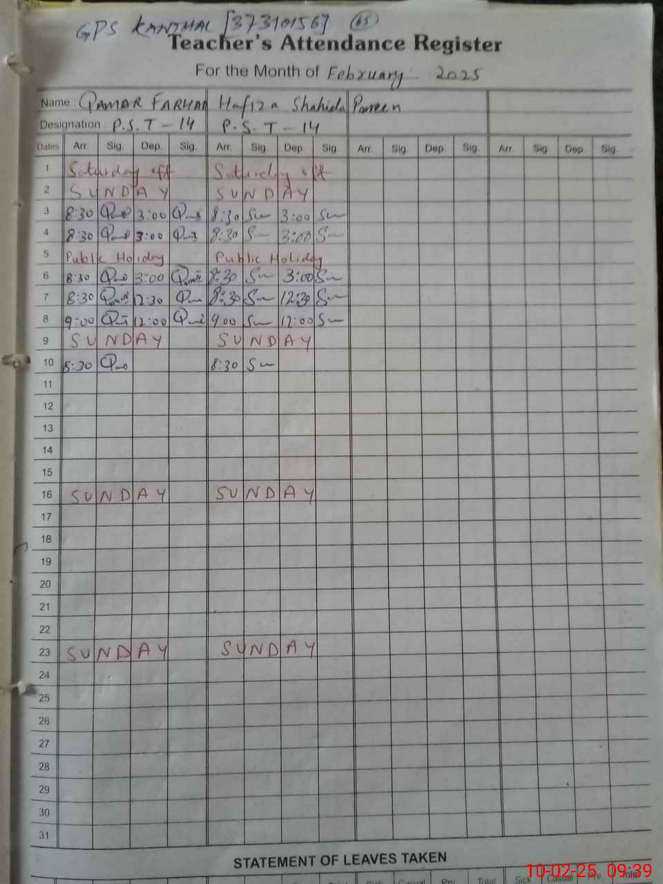 | Name: Qa**** Fa**** Designation: (School Headmaster's/Headmistress's) PST Phone/Cell Number: 03**** |