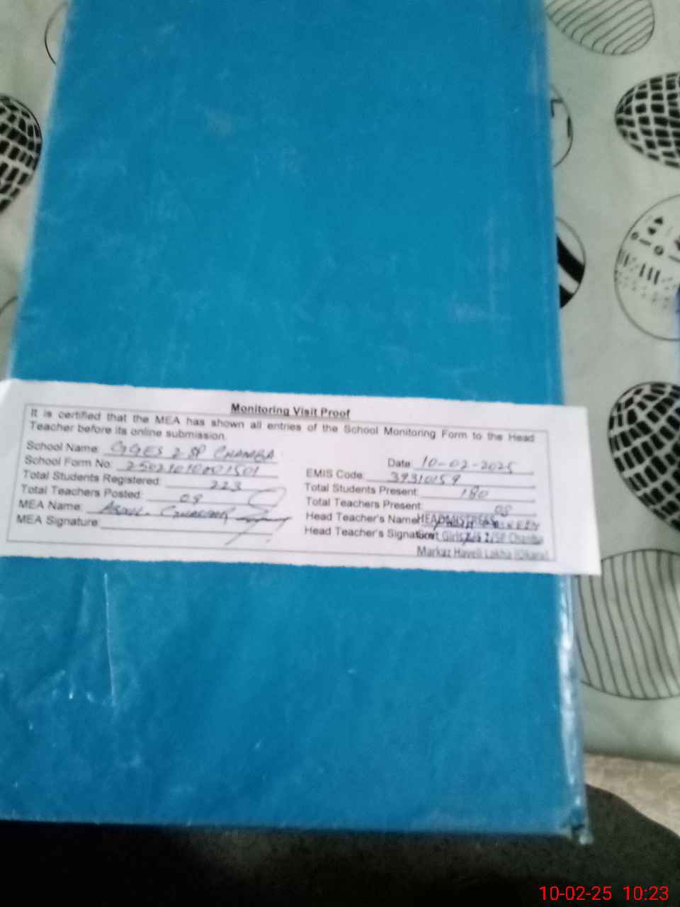 | Attendance Register | Head Teacher | MEA with School | Visit Proof |