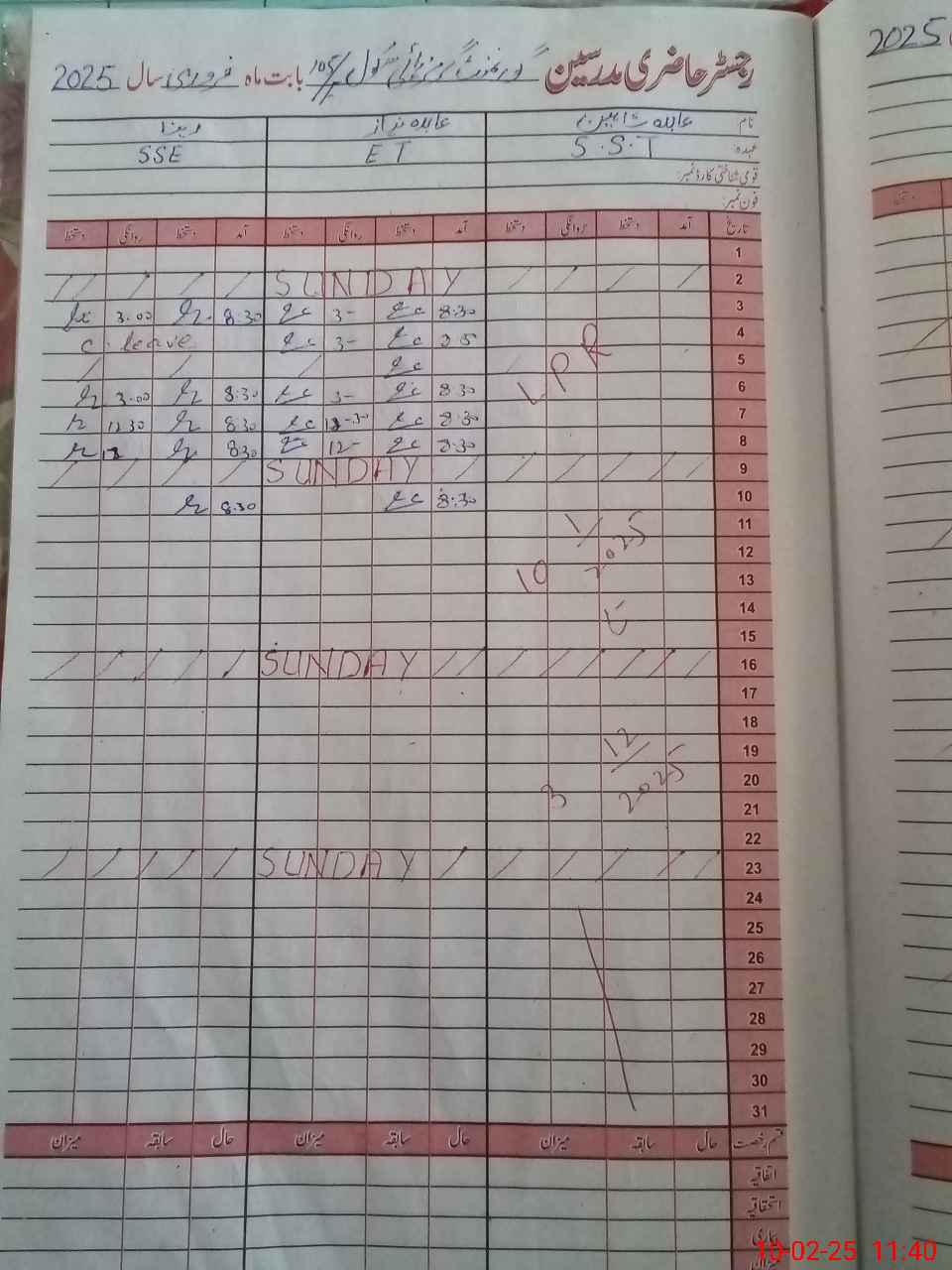 | CNIC | Full Name | Designation | R/C | Absence During Last Calender Month |