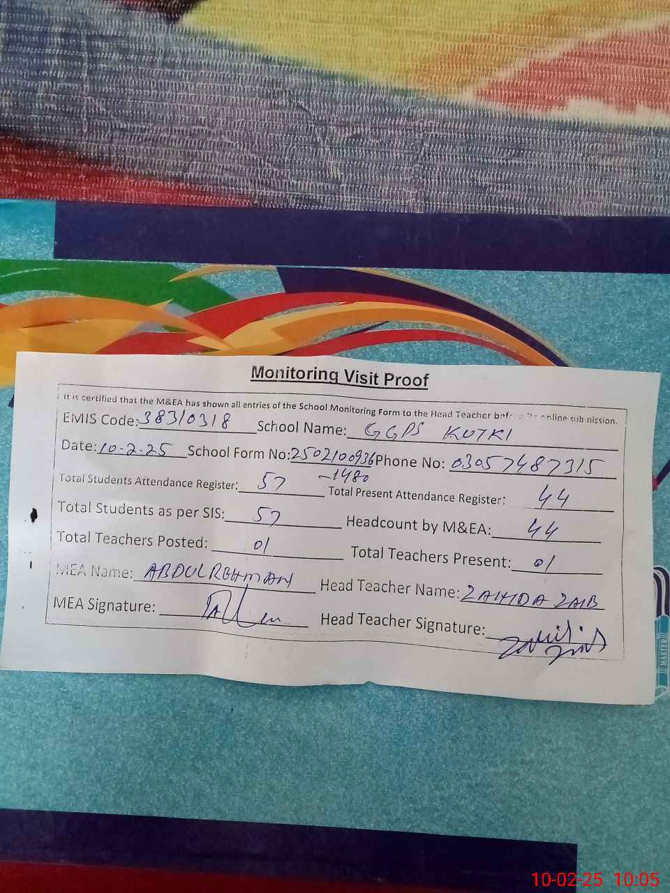 | EMIS Code: 38310318 | Name of School: GGPS KUTKI | |||