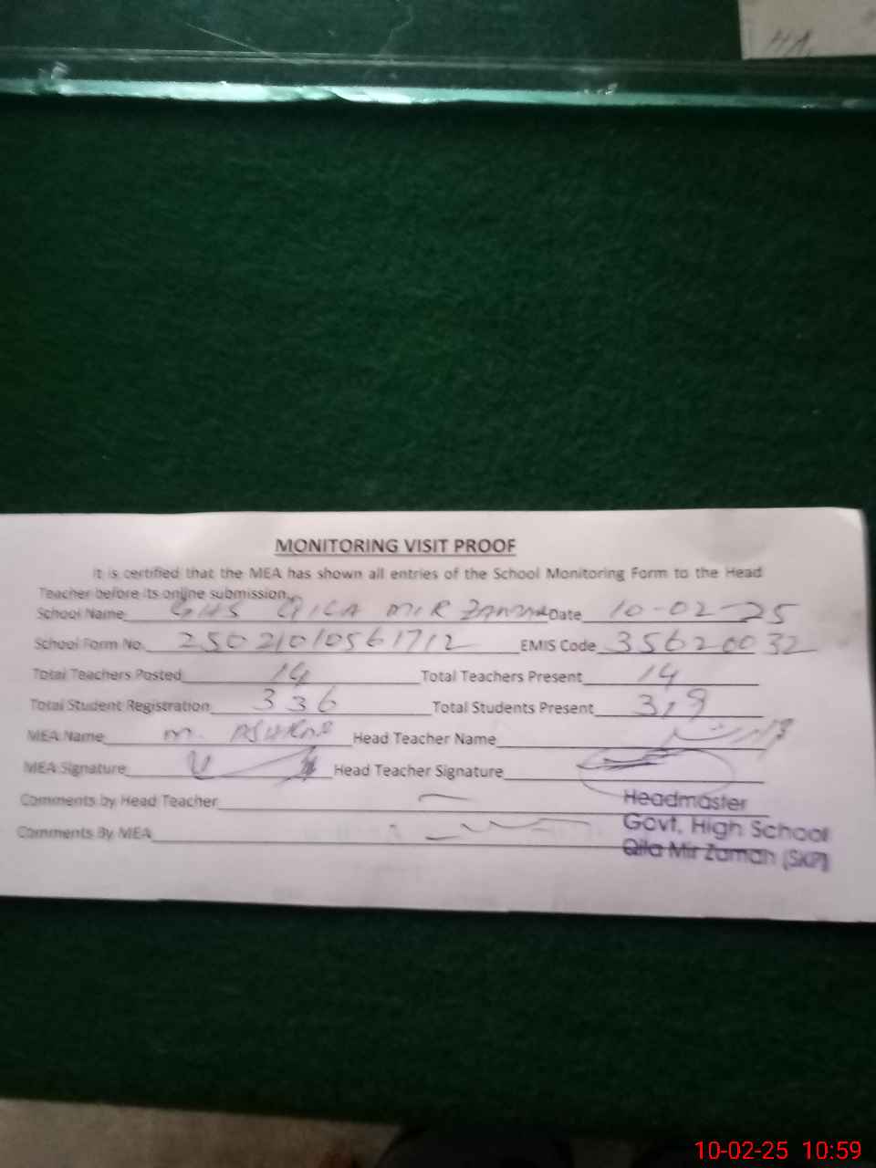 | EMIS Code: 35620032 | Name of School: GHS QILA MIR ZAMAN | |||