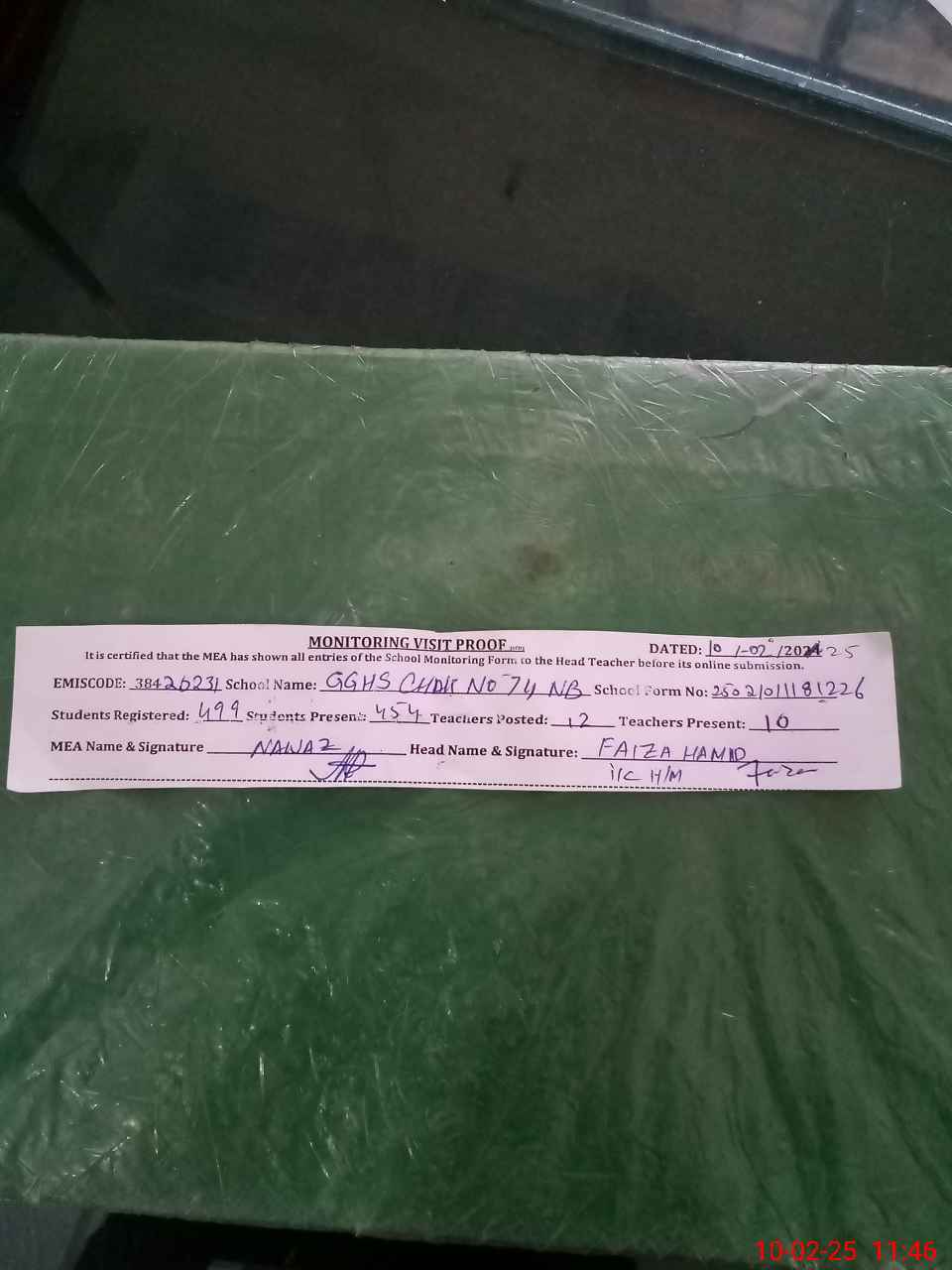 | EMIS Code: 38420231 | Name of School: GGHS CHAK NO.74 NB | |||