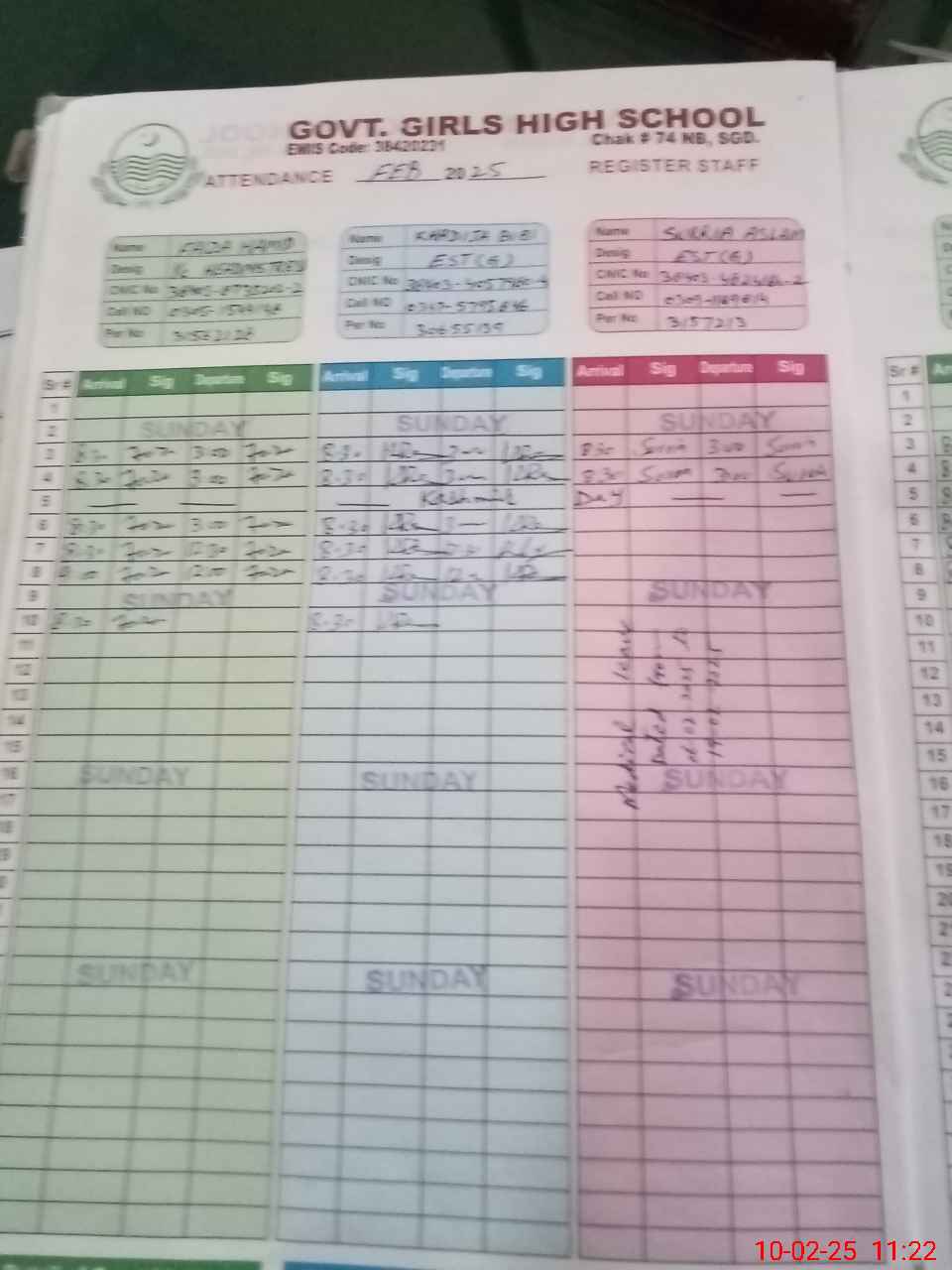 | Name: Fa**** Ha**** Designation: (School Headmaster's/Headmistress's) I/C SST Phone/Cell Number: 03**** |