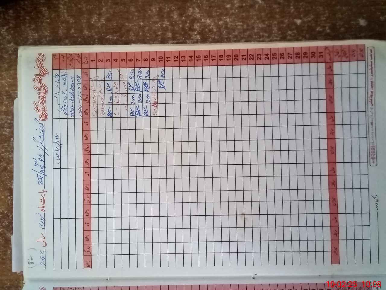 | CNIC | Full Name | Designation | R/C | Absence During Last Calender Month |