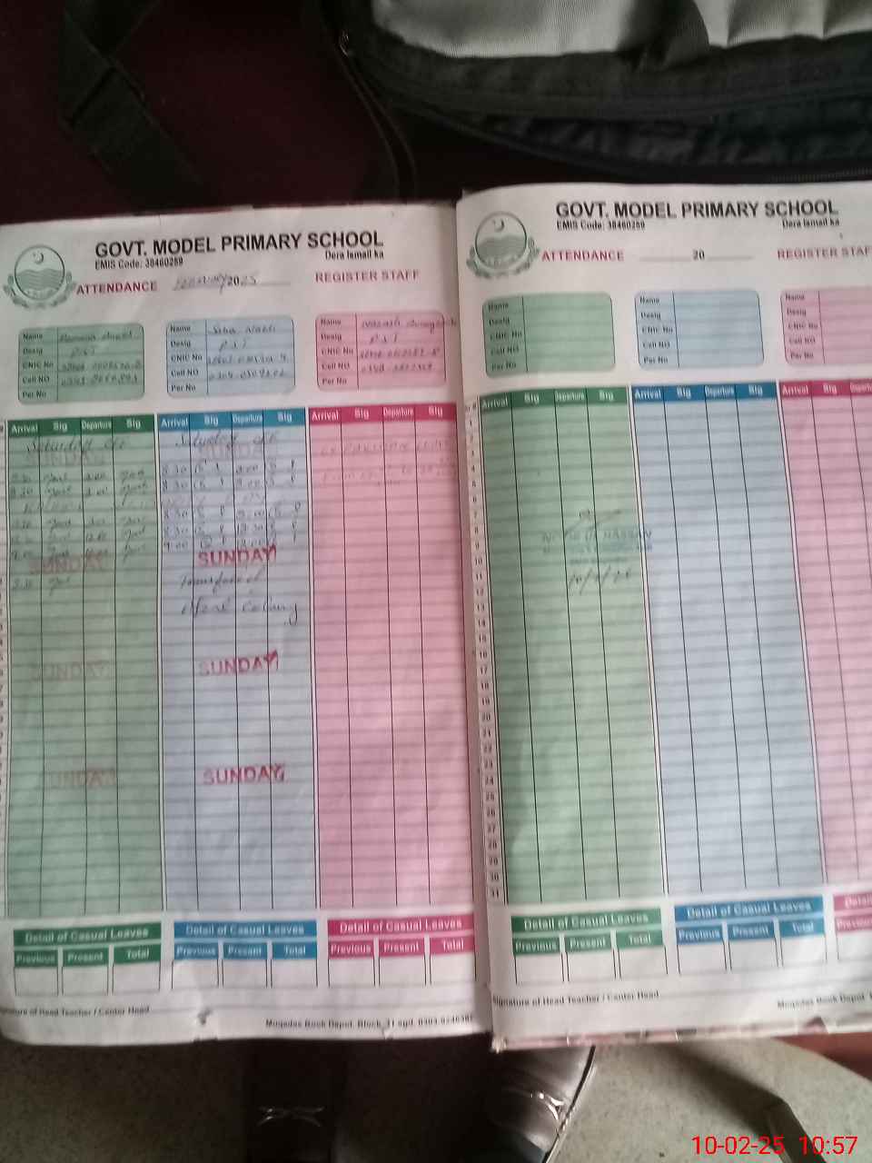 | CNIC | Full Name | Designation | R/C | Absence During Last Calender Month |