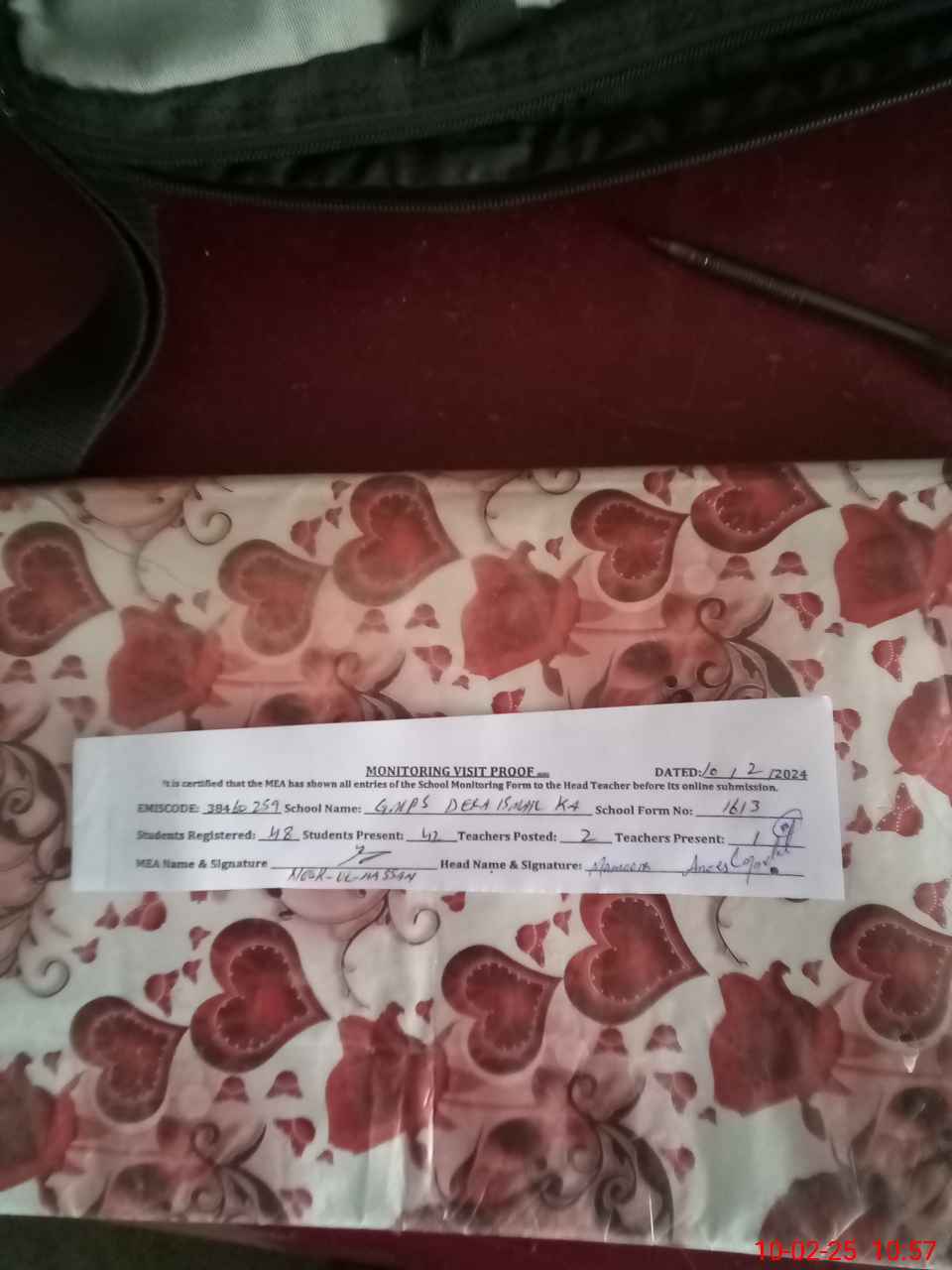 | Certified that this School was Inspected by the Undersigned MEA/DMO Today and the Information Stated Above is as Per Record. | |||||