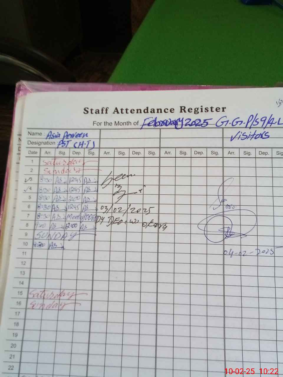 | Name: AS**** PA**** Designation: (School Headmaster's/Headmistress's) PST Phone/Cell Number: 03**** |