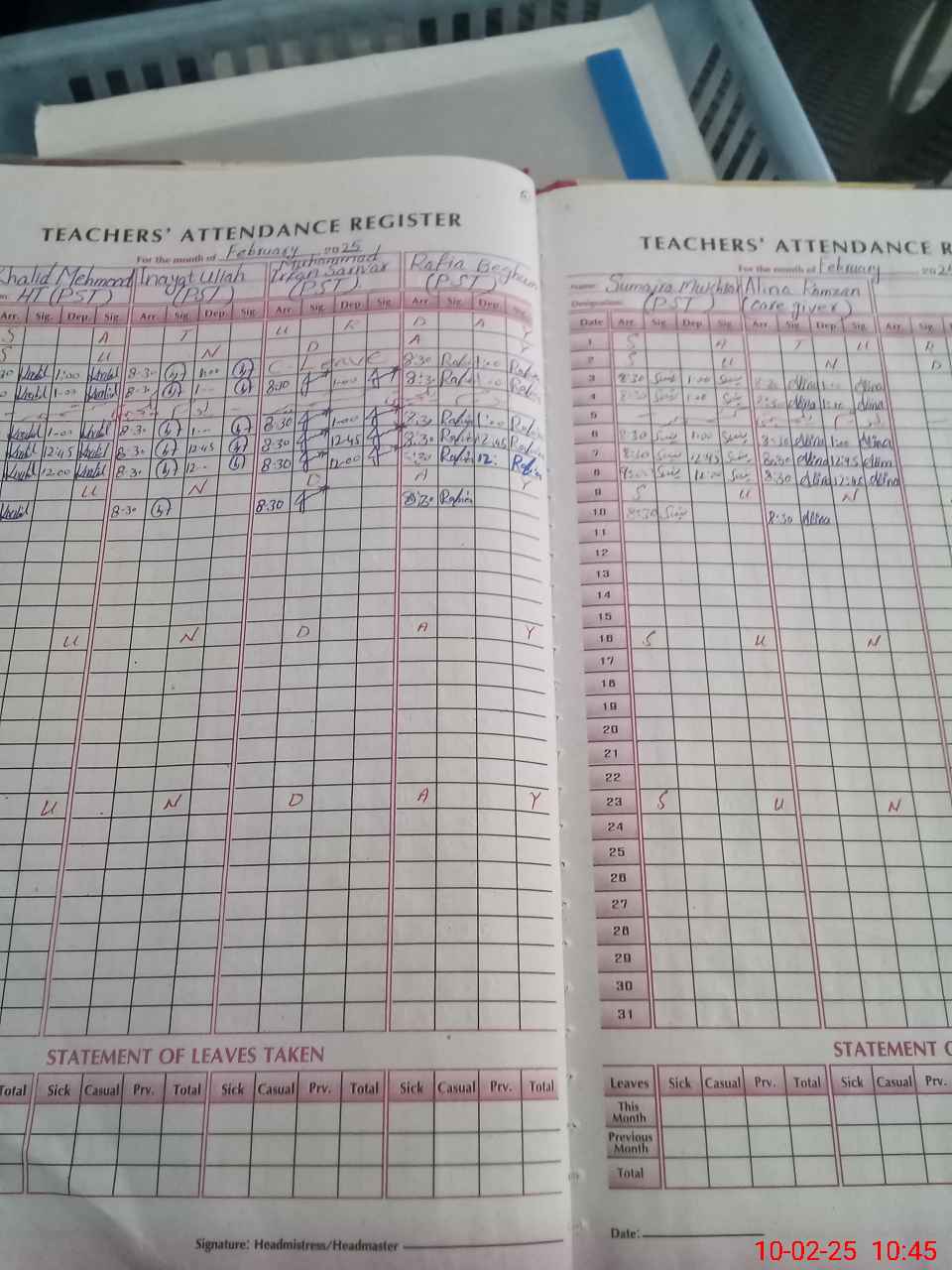 | Name: Kh**** Me**** Designation: (School Headmaster's/Headmistress's) PST Phone/Cell Number: 03**** |