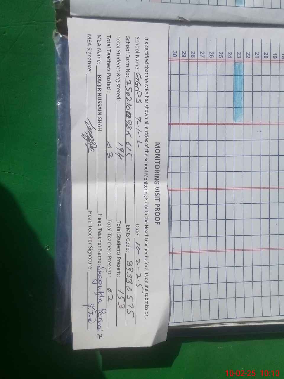 | Certified that this School was Inspected by the Undersigned MEA/DMO Today and the Information Stated Above is as Per Record. | |||||