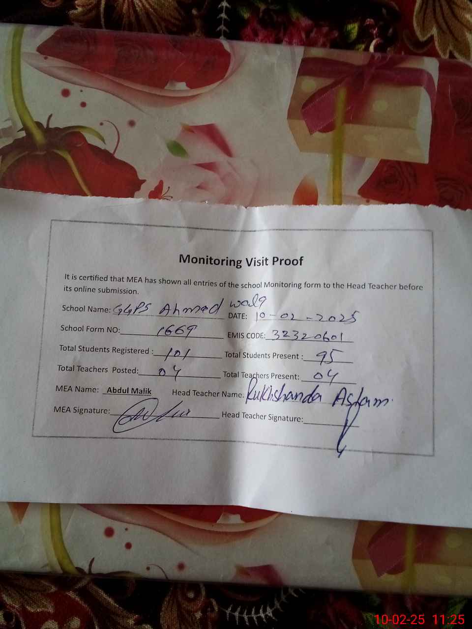 | EMIS Code: 32320601 | Name of School: GGPS AHMAD WALA | |||