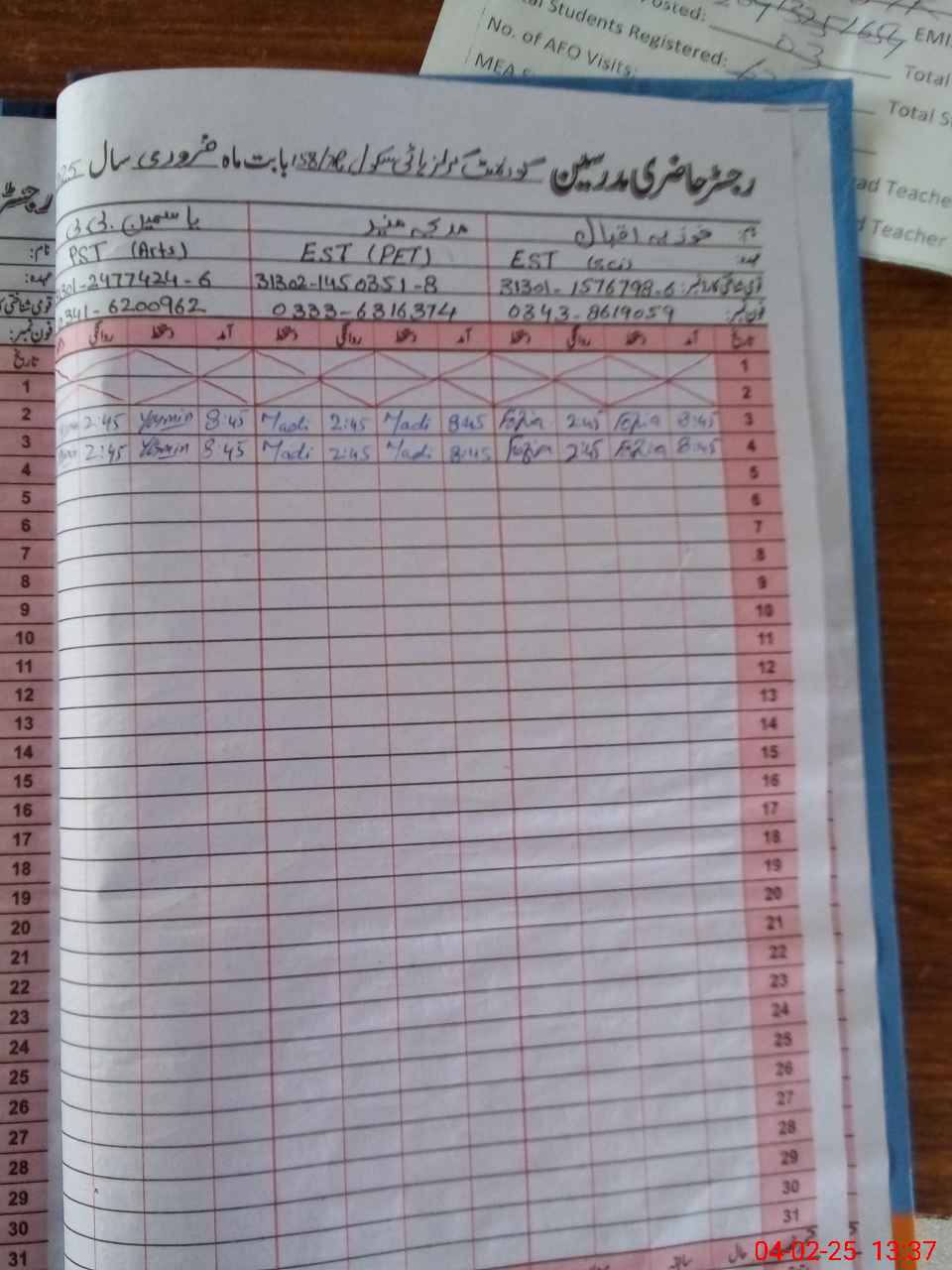 | Name: Fa**** Ja**** Designation: (School Headmaster's/Headmistress's) SSE (Science ) Phone/Cell Number: 03**** |