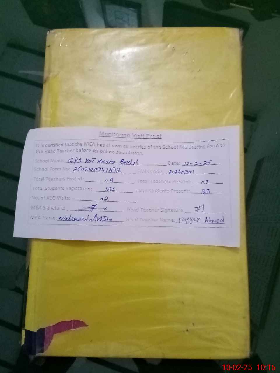 | EMIS Code: 31340301 | Name of School: GPS KOT KARIM BAKHSH | |||