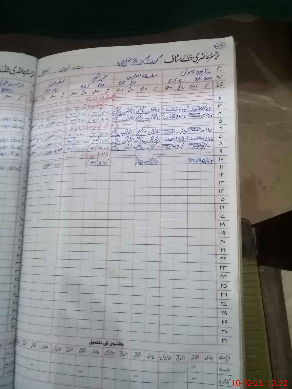 | CNIC | Full Name | Designation | R/C | Absence During Last Calender Month |
