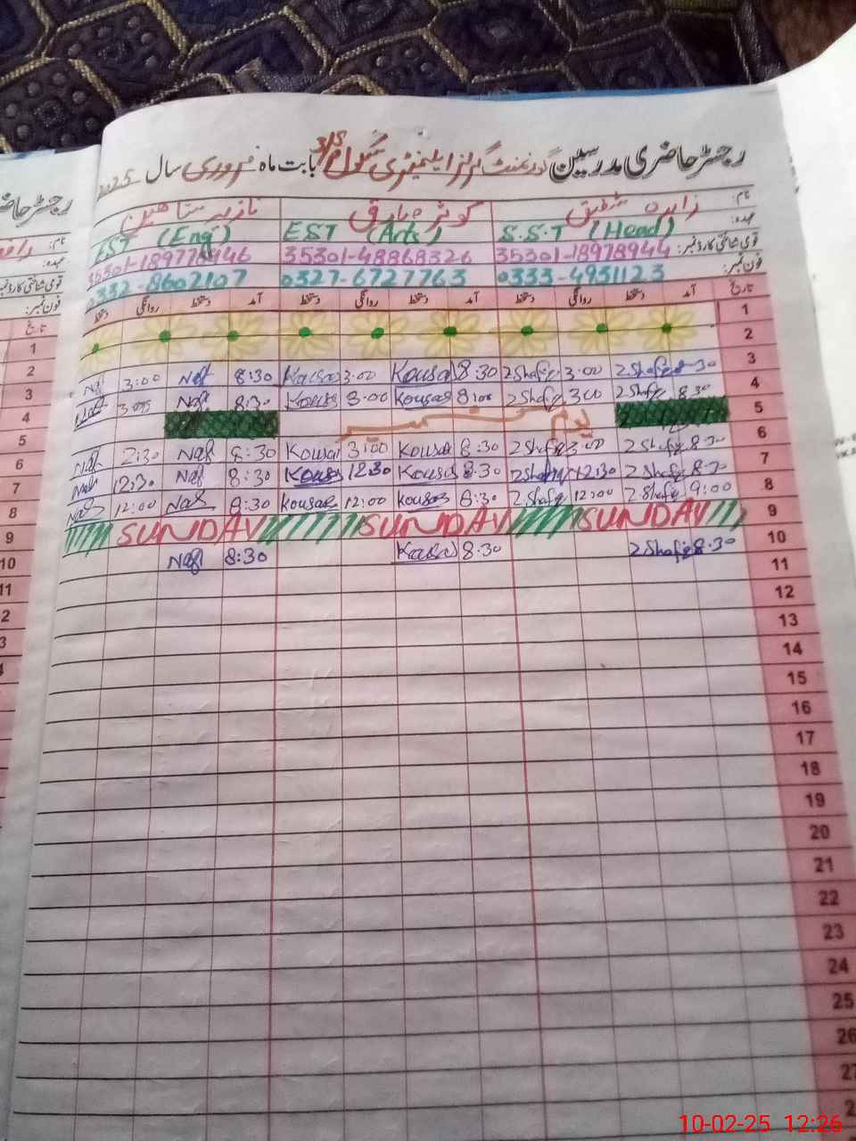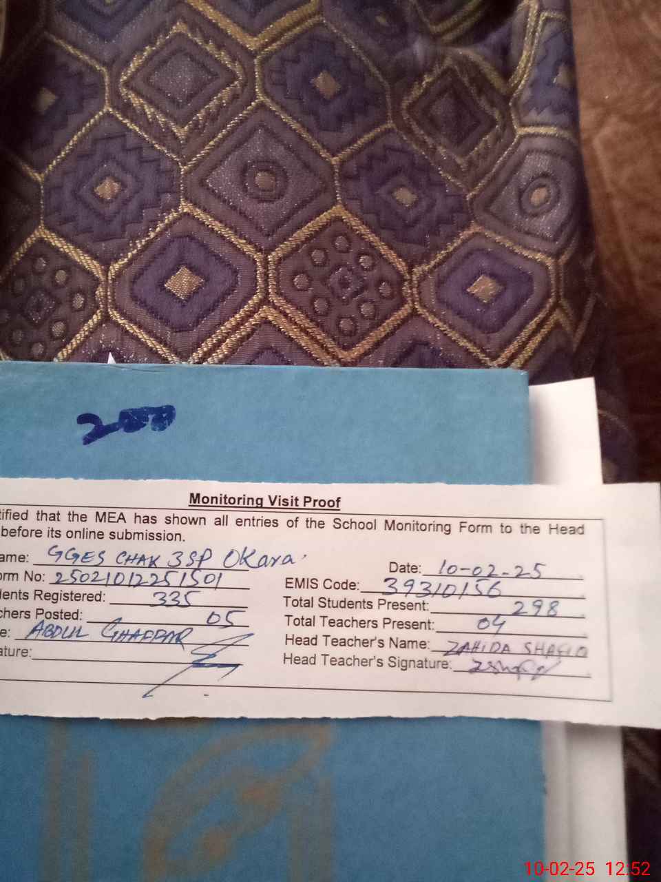 | Name: Za**** Sh**** Designation: (School Headmaster's/Headmistress's) SST ARTS Phone/Cell Number: 03**** |