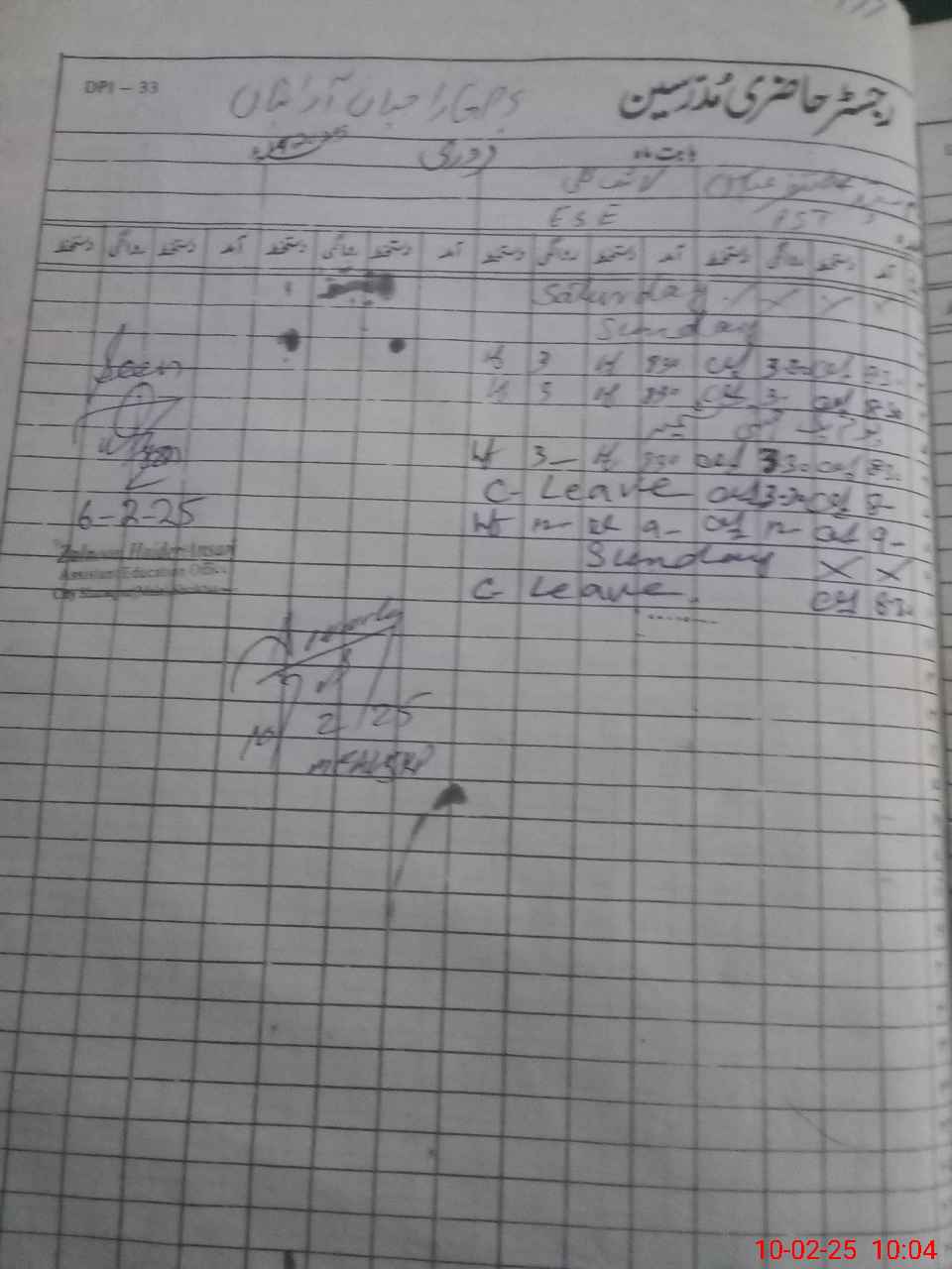 | CNIC | Full Name | Designation | R/C | Absence During Last Calender Month |
