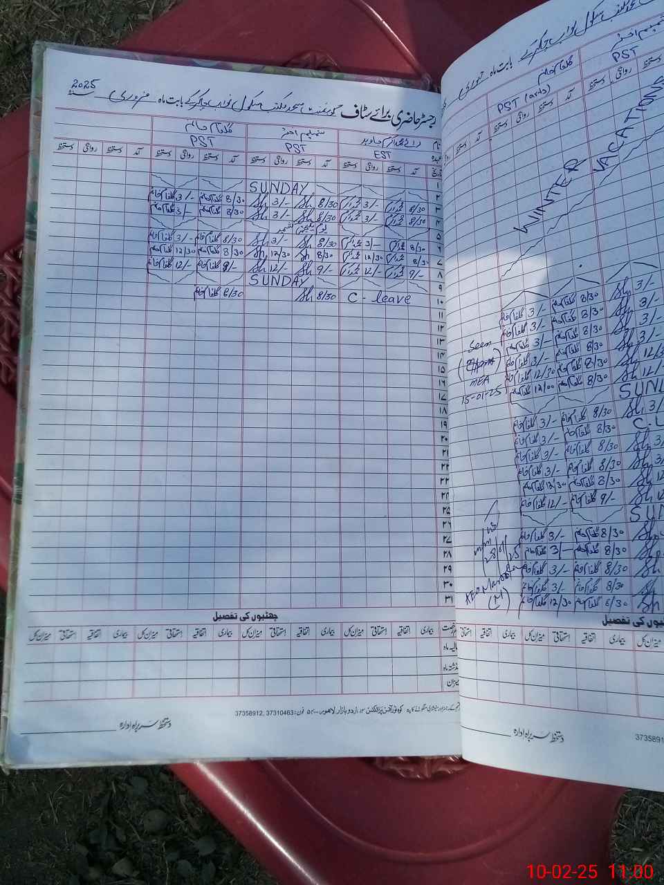 | CNIC | Full Name | Designation | R/C | Absence During Last Calender Month |