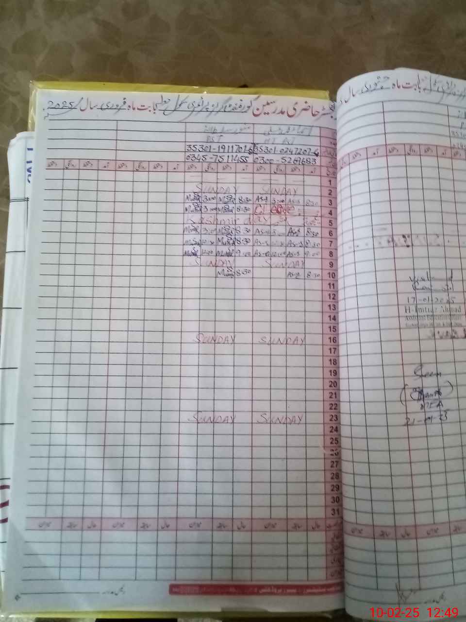 | CNIC | Full Name | Designation | R/C | Absence During Last Calender Month |