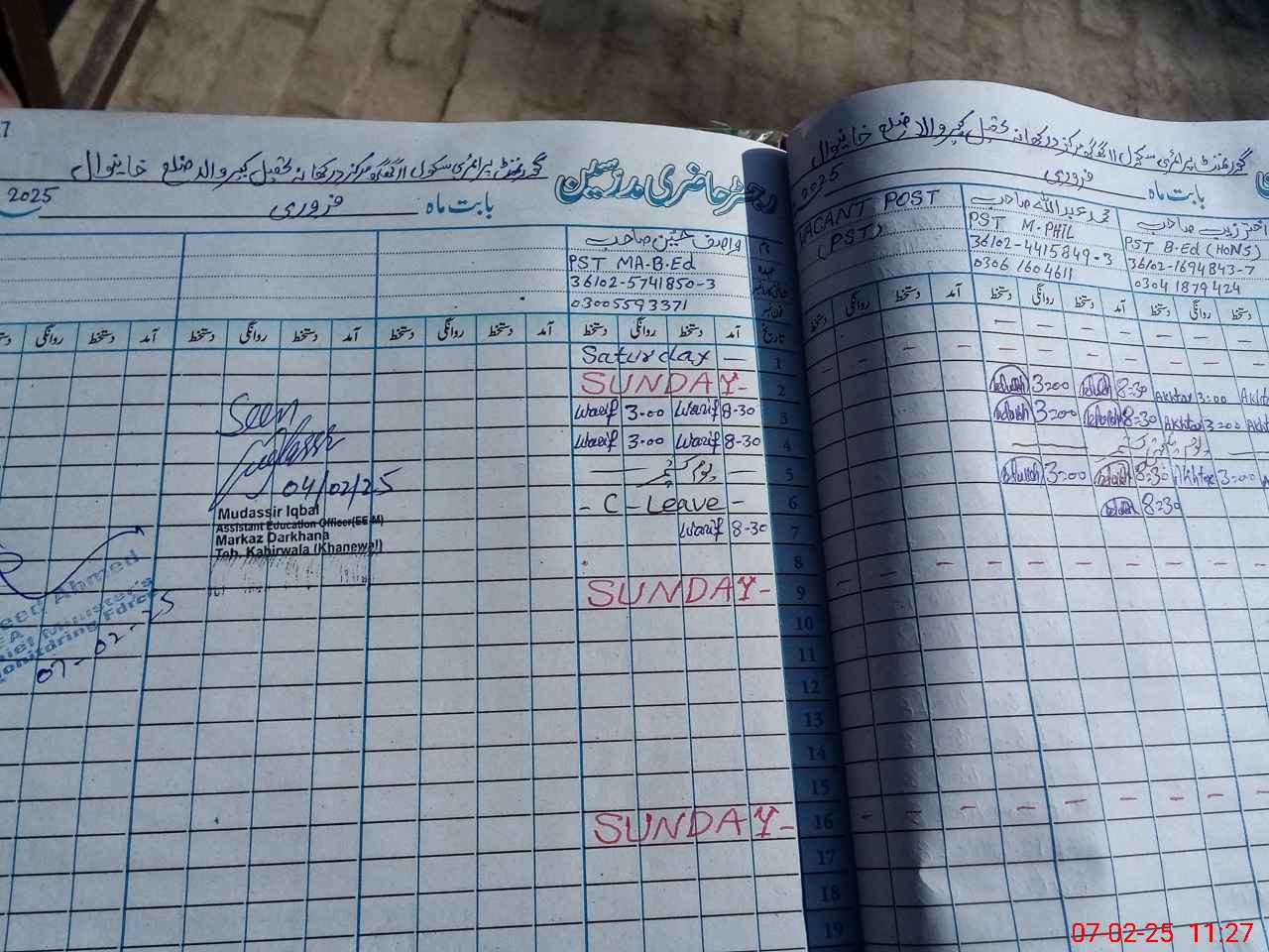 | Name: WA**** HU**** Designation: (School Headmaster's/Headmistress's) PST Phone/Cell Number: 03**** |