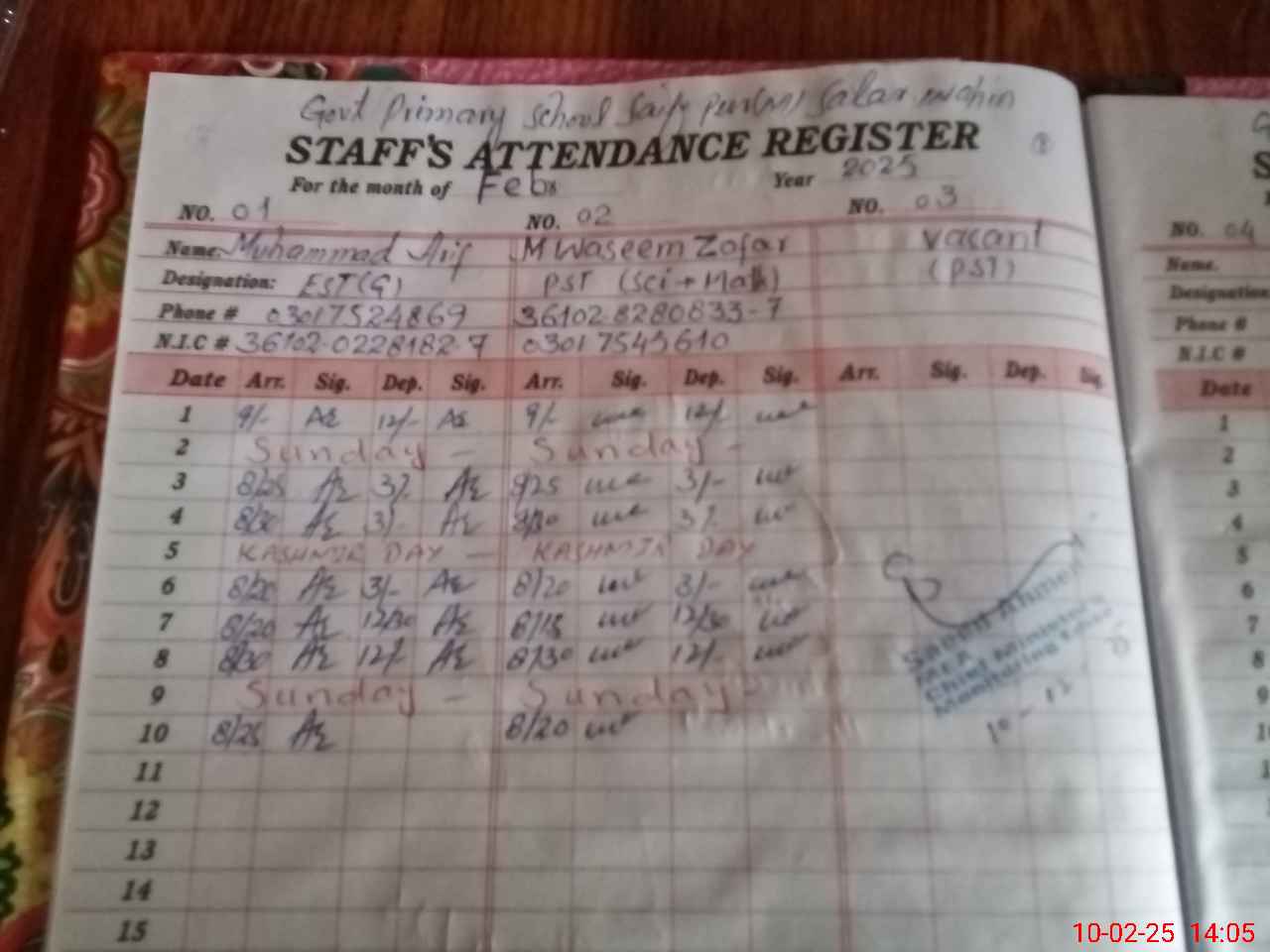 | Name: Mo**** Wa**** Za**** Designation: (School Headmaster's/Headmistress's) PTC/JV Phone/Cell Number: 03**** |