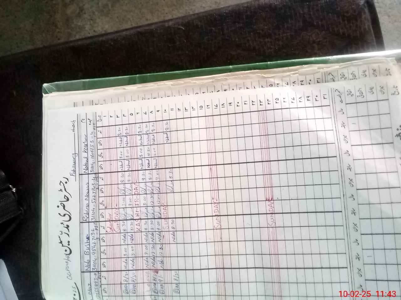 | CNIC | Full Name | Designation | R/C | Absence During Last Calender Month |