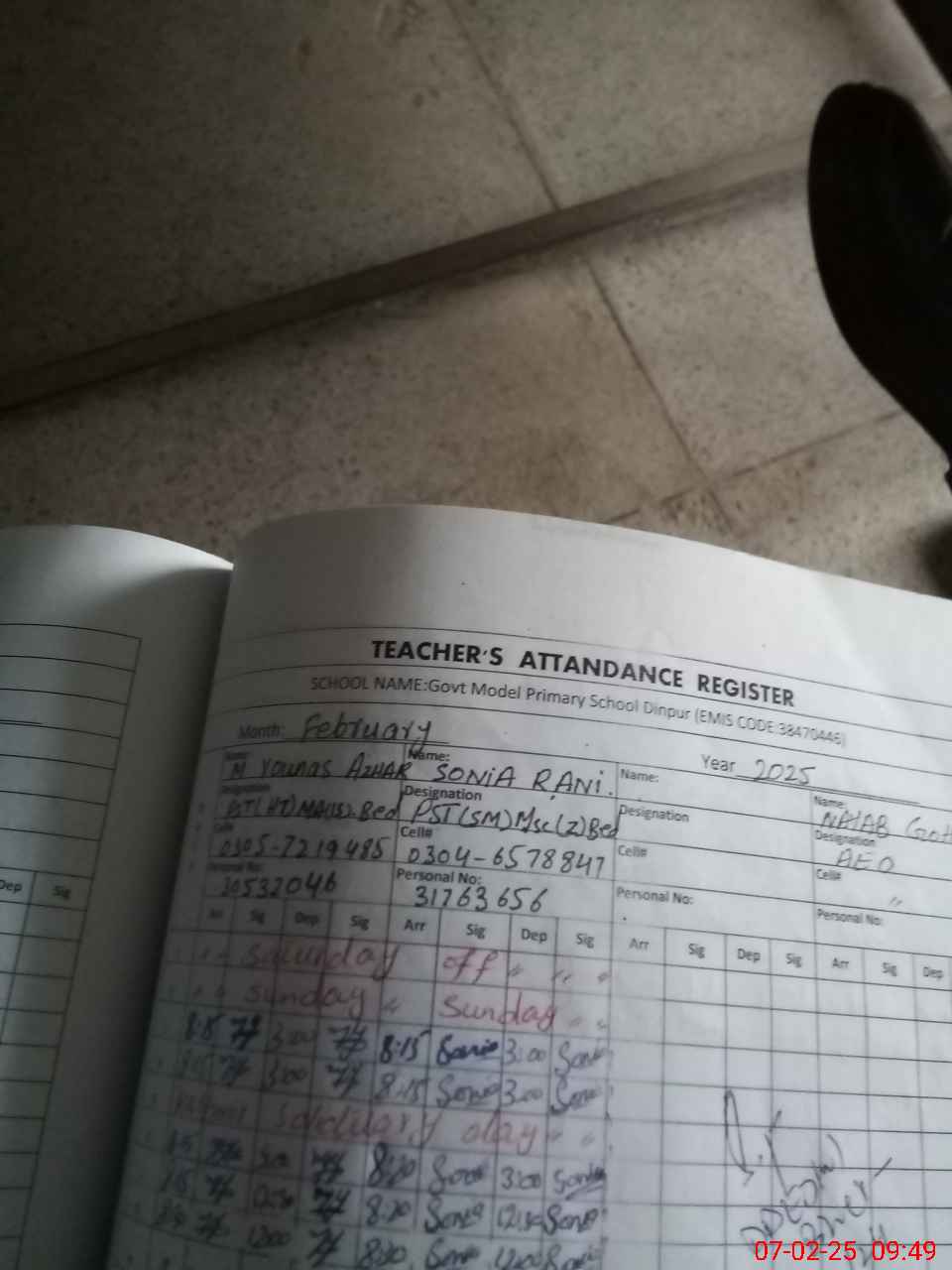 | Name: MU**** YO**** Designation: (School Headmaster's/Headmistress's) PST Phone/Cell Number: 03**** |